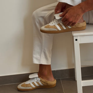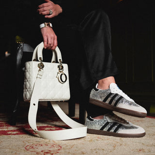 Un'intersuola bianca sopra una suola in gomma Red Grind completa il design.